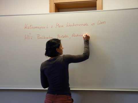 Published inGerman Professor Lisa Höll Writes a Homework Assignment on the Board