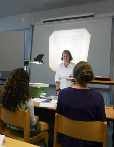 Previous Image Next Image Theology Professor Eva Aussermair Teaches the Class about the Development of the Bible Theology Professor Eva AuÃermair Teaches the Class about the Development of the Bible